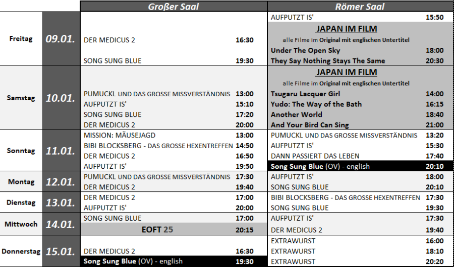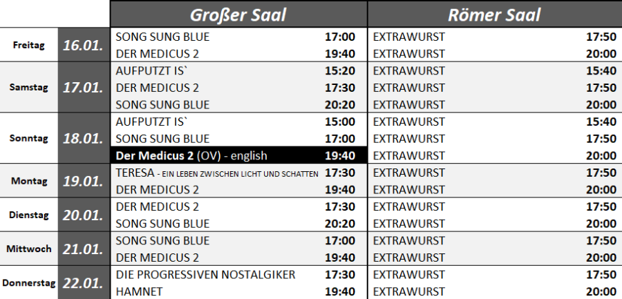 Leider können wir aufgrund der 2 Säle nicht länger vorraus planen.